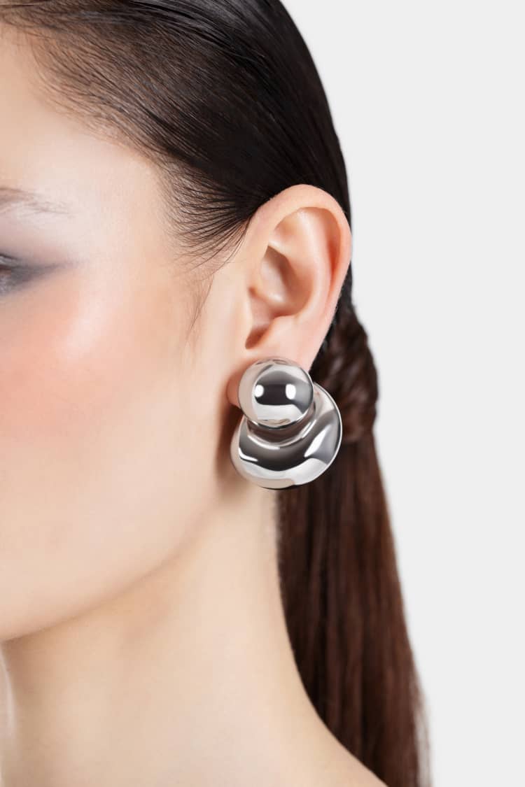 Bold Double Stud Earrings in Silver