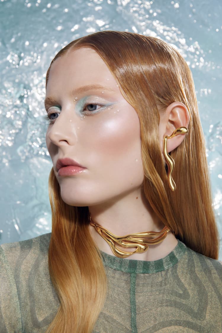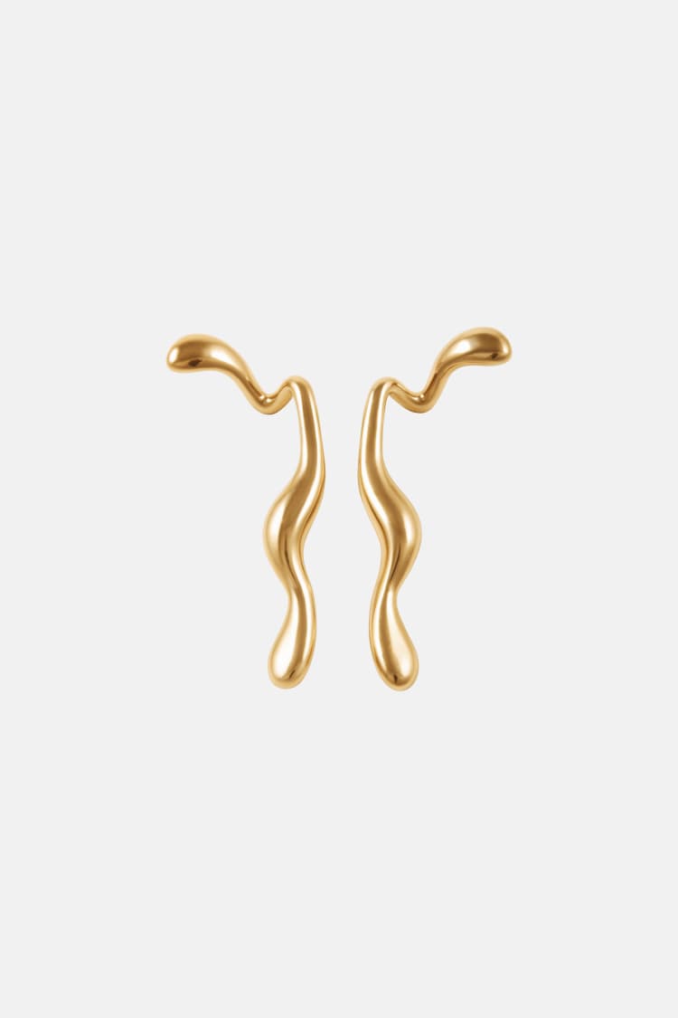 Discover our exquisite gold liquid earrings, designed to elegantly hook around your ears. Perfect for adding a touch of luxury and sophistication to any outfit. Shop now for a timeless accessory that enhances your style.