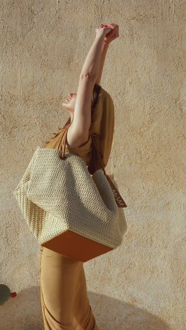 Mediterranean accessories made with natural raffia are a summer staple. Because of their freshness, lightness and versatility, they are ideal for moving between the beach and the city. The hand-woven natural raffia basket with vegetable-dyed leather details can be used in different ways, adapting it to your summer routines.