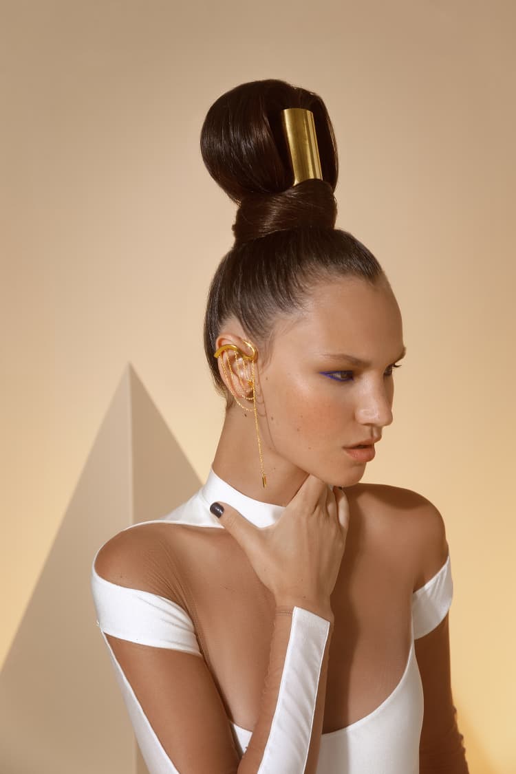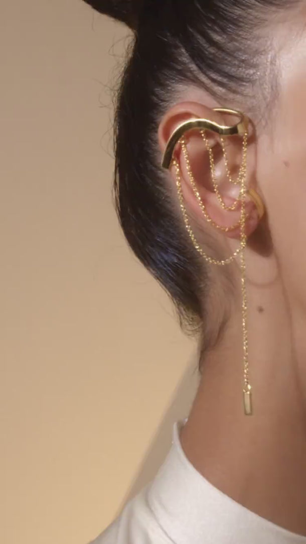 Gold Draping Ear Cuff with Pendant