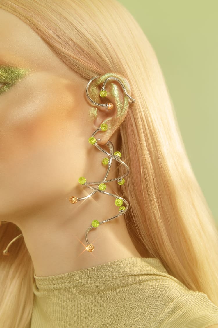 Una colección creada con materiales éticamente responsables, cada pieza está chapada en oro y rodio, ofreciendo un acabado moderno y llamativo.