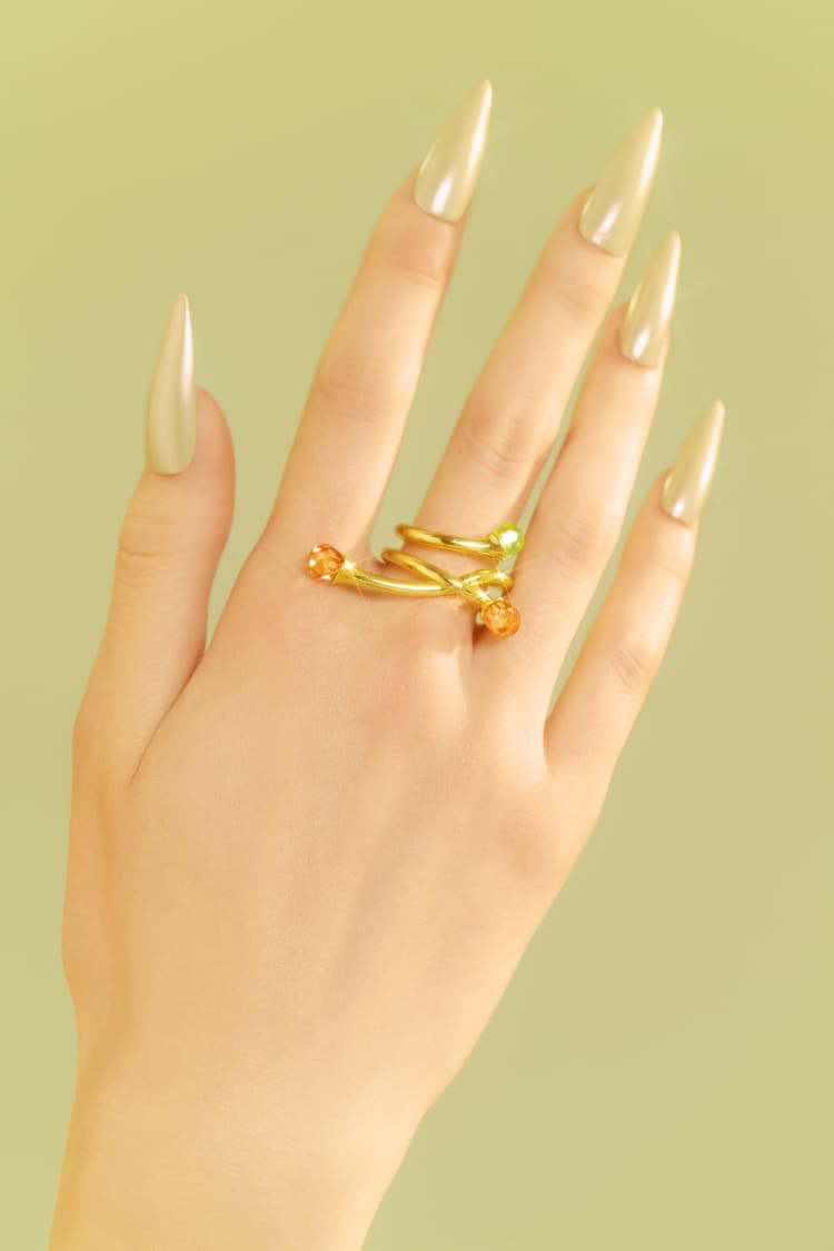 Anillo midi dorado llamativo con cristales de ópalo y topacio