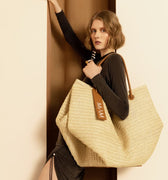 Mediterranean accessories made with natural raffia are a summer staple. Because of their freshness, lightness and versatility, they are ideal for moving between the beach and the city. The hand-woven natural raffia basket with vegetable-dyed leather details can be used in different ways, adapting it to your summer routines.