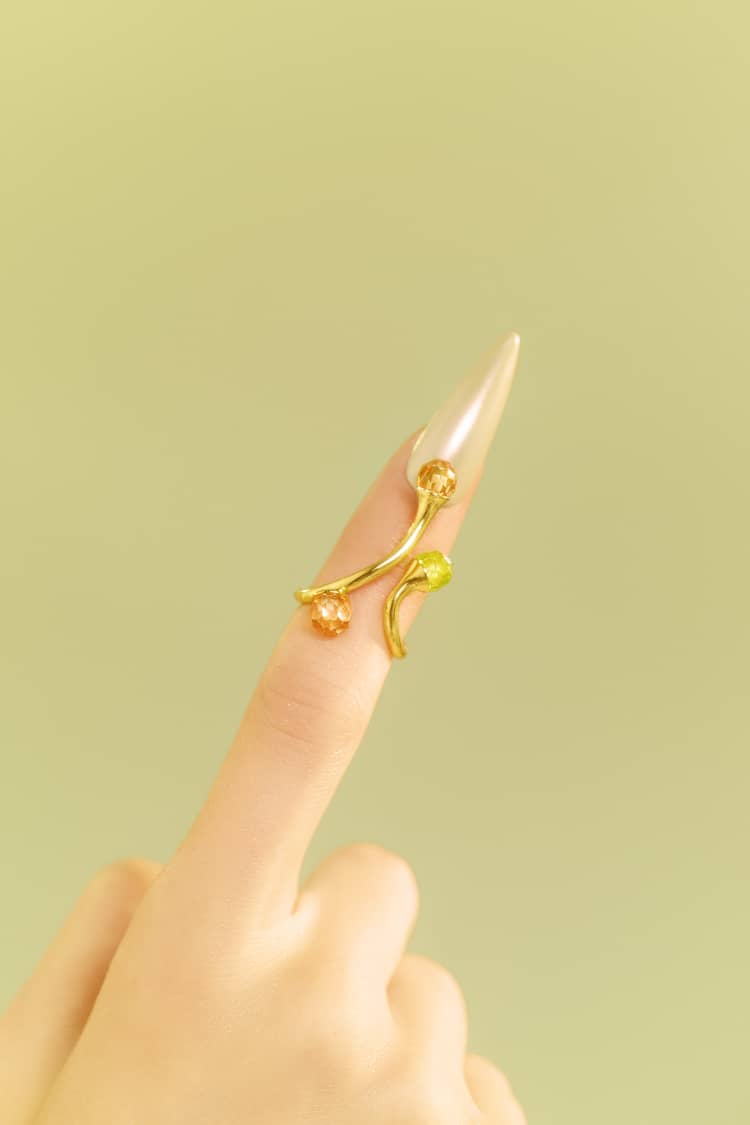Jewellery that flows and moves like the roots of the earth adorned with crystal stones in earthy browns and vibrant greens that reflect the wild beauty of the forest. Let these bold, nature-inspired pieces become a part of you, integrating seamlessly with your style.