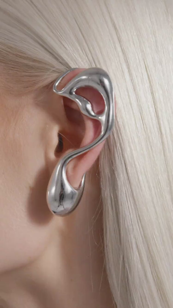 Silver Asymmetrical Liquid Earring