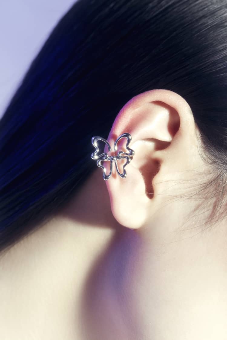 Silver Butterfly Huggie Ear Cuff