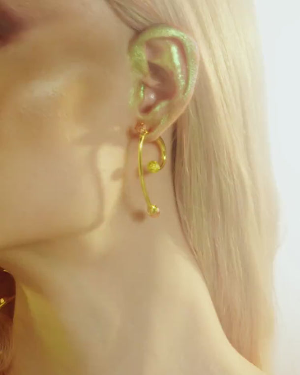 Gold Asymmetric Earrings with Opal and Topaz Crystals