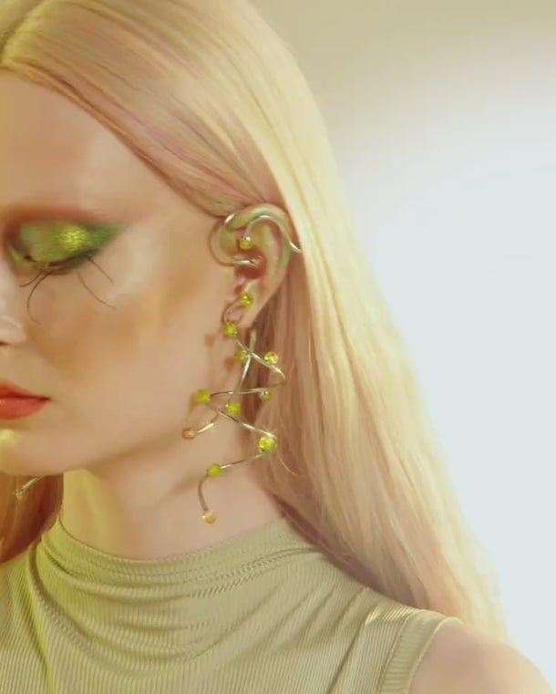 Jewellery that flows and moves like the roots of the earth adorned with crystal stones in earthy browns and vibrant greens that reflect the wild beauty of the forest. Let these bold, nature-inspired pieces become a part of you, integrating seamlessly with your style.