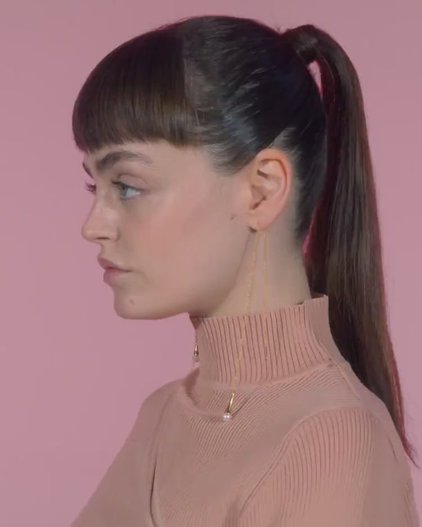 Gold Drop Earrings with Pearl
