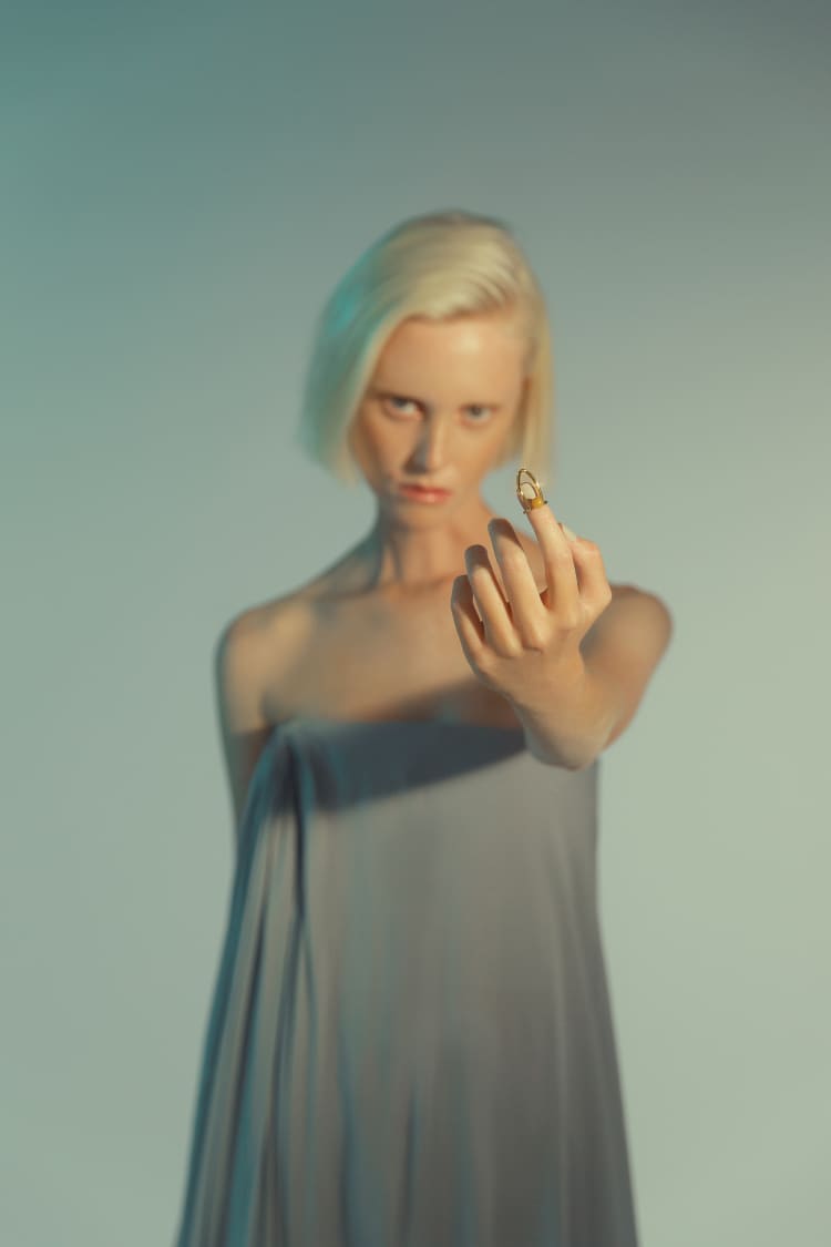 Gold Nail Ring with Embedded Stone