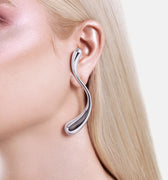 Large S-Shaped Drop Earrings - silver