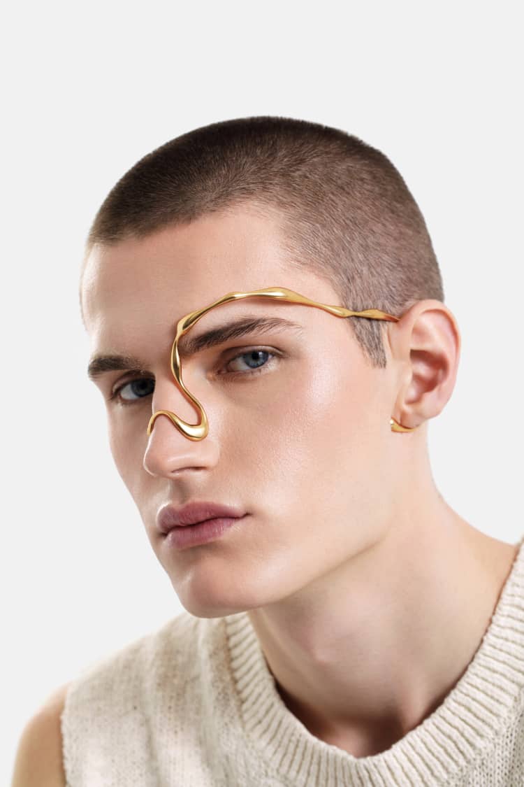 organic-shaped face jewelry in gold
