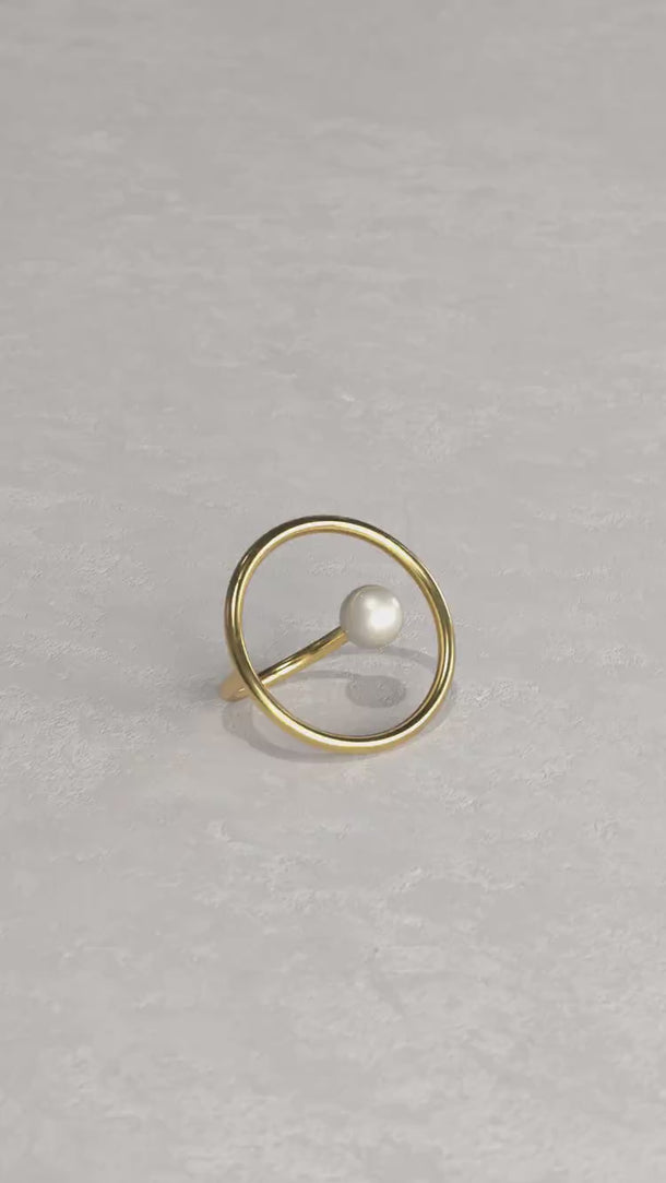 Gold Pearl Circular Ring