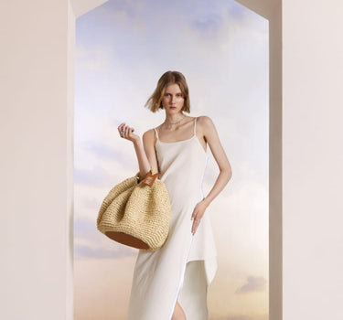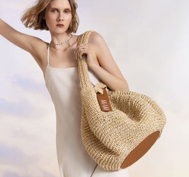 Mediterranean accessories made with natural raffia are a summer staple. Because of their freshness, lightness and versatility, they are ideal for moving between the beach and the city. The hand-woven natural raffia basket with vegetable-dyed leather details can be used in different ways, adapting it to your summer routines.