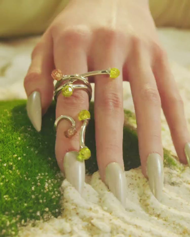 Jewellery that flows and moves like the roots of the earth adorned with crystal stones in earthy browns and vibrant greens that reflect the wild beauty of the forest. Let these bold, nature-inspired pieces become a part of you, integrating seamlessly with your style.
