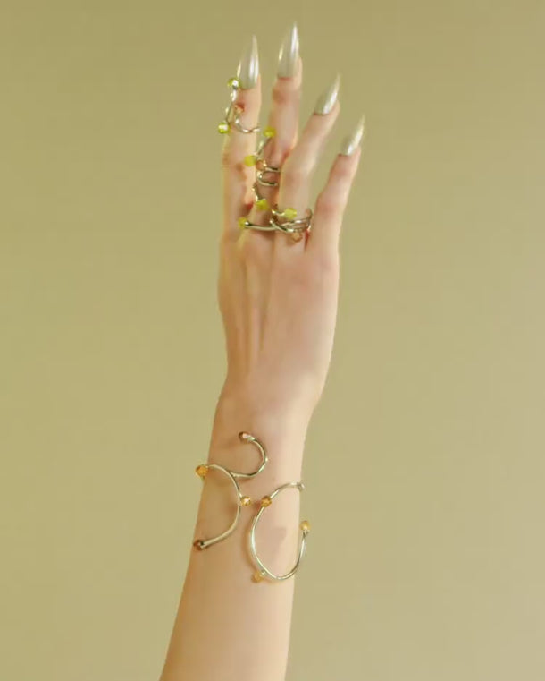 Jewellery that flows and moves like the roots of the earth adorned with crystal stones in earthy browns and vibrant greens that reflect the wild beauty of the forest. Let these bold, nature-inspired pieces become a part of you, integrating seamlessly with your style.