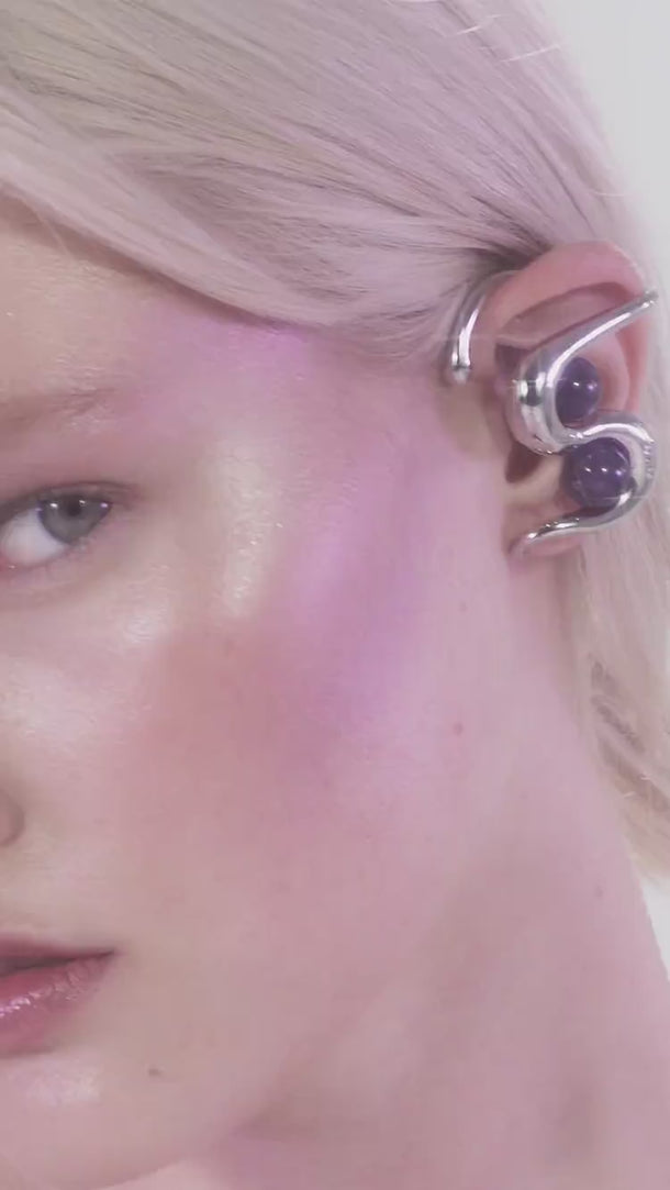 Silver Ear Cuff with Amethyst
