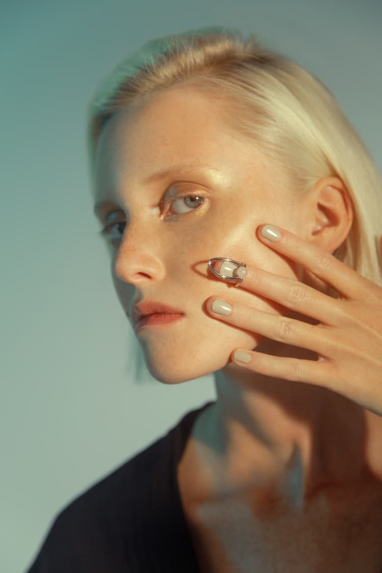 Silver Nail Ring with Embedded Stone